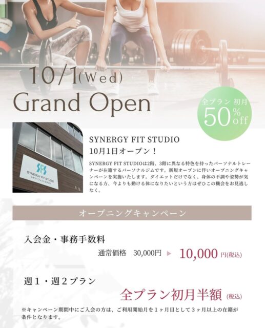 当ジムでは、現在「オープン記念キャンペーン」を実施中です。